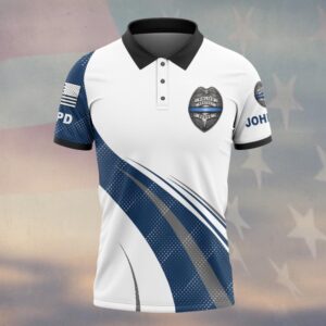 Custom Name & Station White Navy Back The Blue Law Enforcement #DQH0617 – Polo