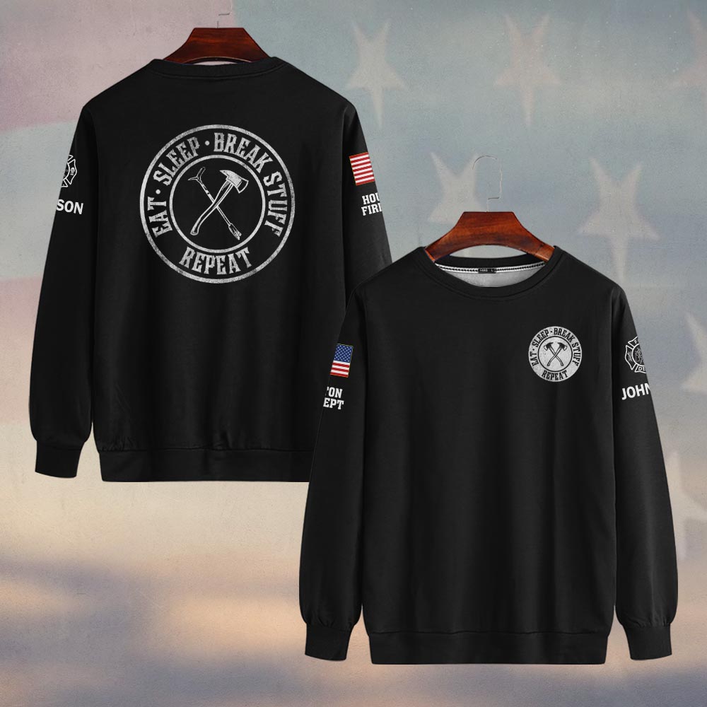 Custom Name & Text Eat Sleep Break Stuff Repeat Firefighter #DQH0415 – Sweatshirt