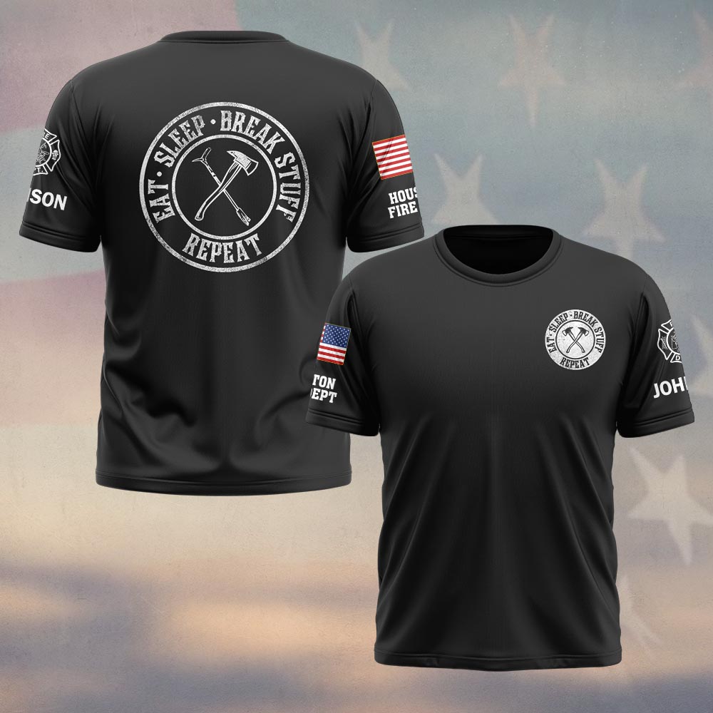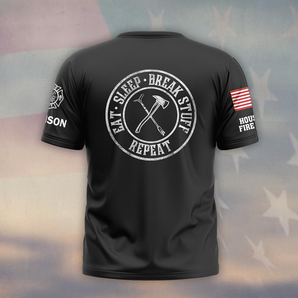 Custom Name & Text Eat Sleep Break Stuff Repeat Firefighter #DQH0415 – T-shirt
