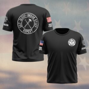 Be the first to review “Custom Name & Text Eat Sleep Break Stuff Repeat Firefighter #DQH0415 – T-shirt”