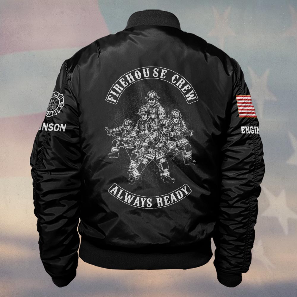 Custom Name & Text Firehouse Crew Always Ready #DQH0430 – Bomber Jacket