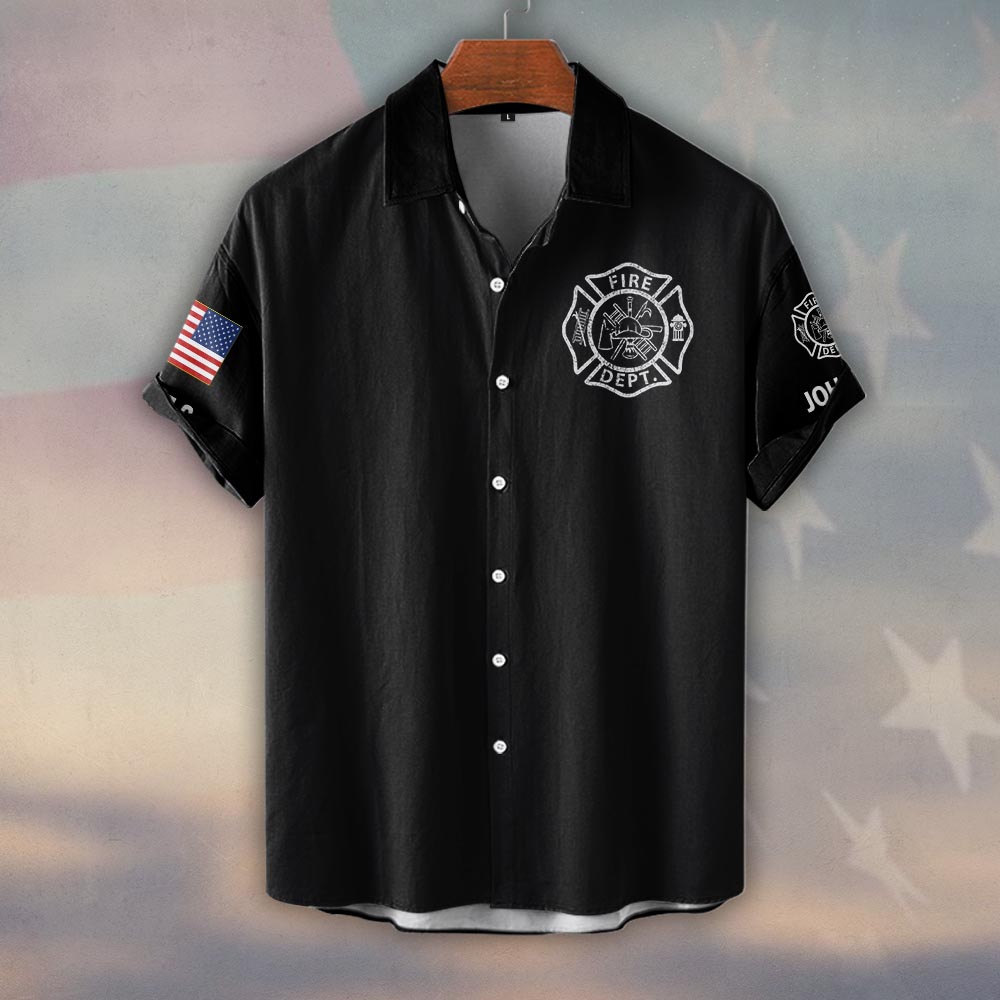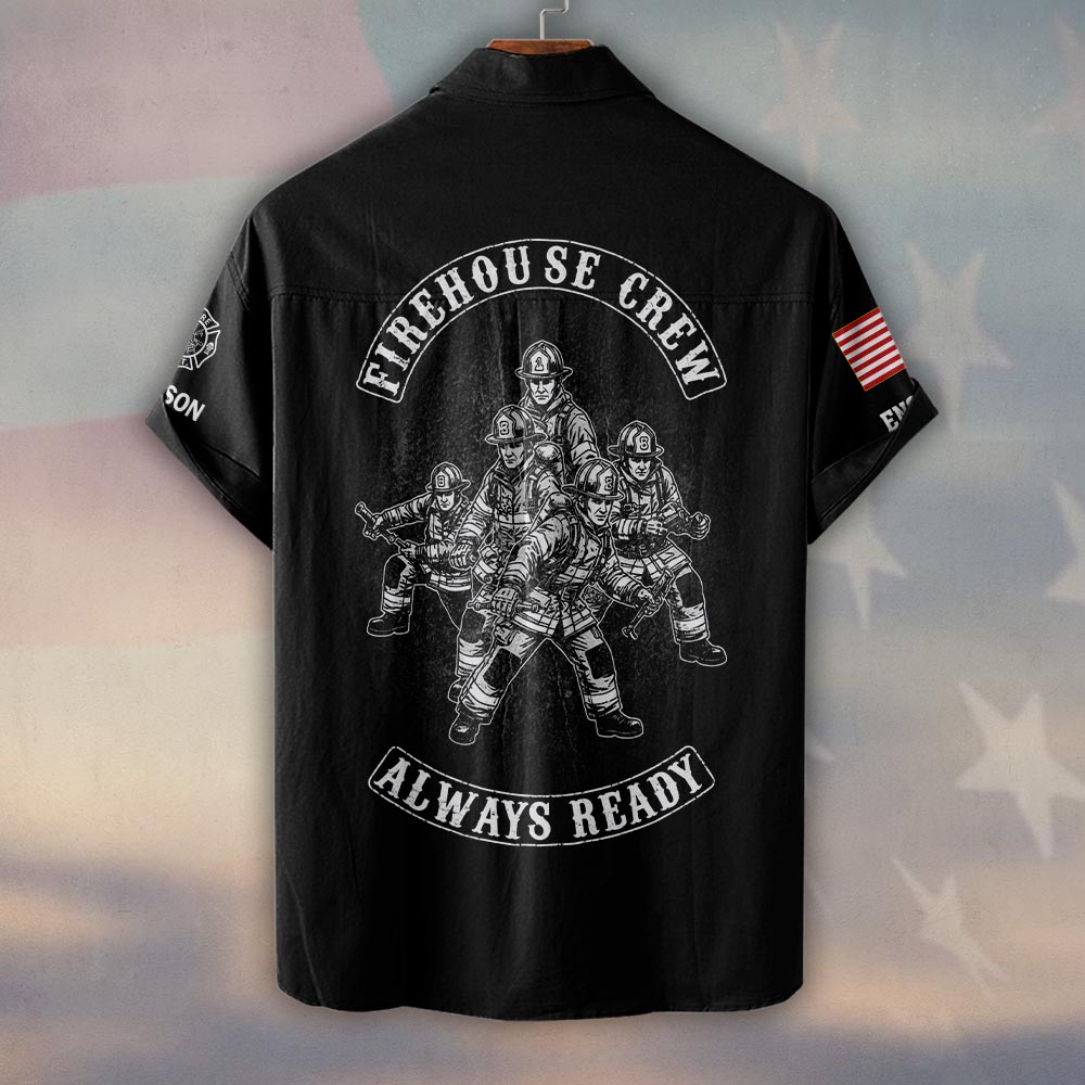 Custom Name & Text Firehouse Crew Always Ready #DQH0430 – Short Sleeve Button Shirt
