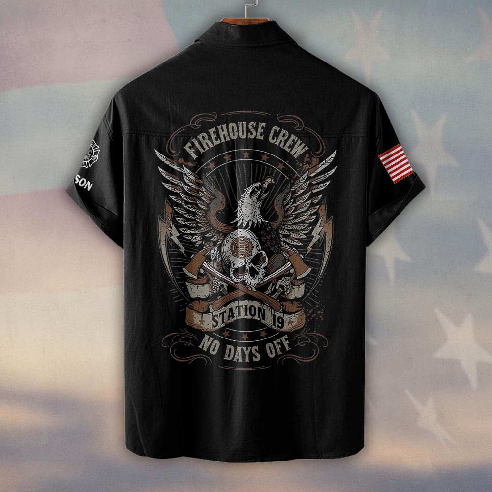 Custom Name & Text Firehouse Crew No Days Off #DQH0431 – Short Sleeve Button Shirt
