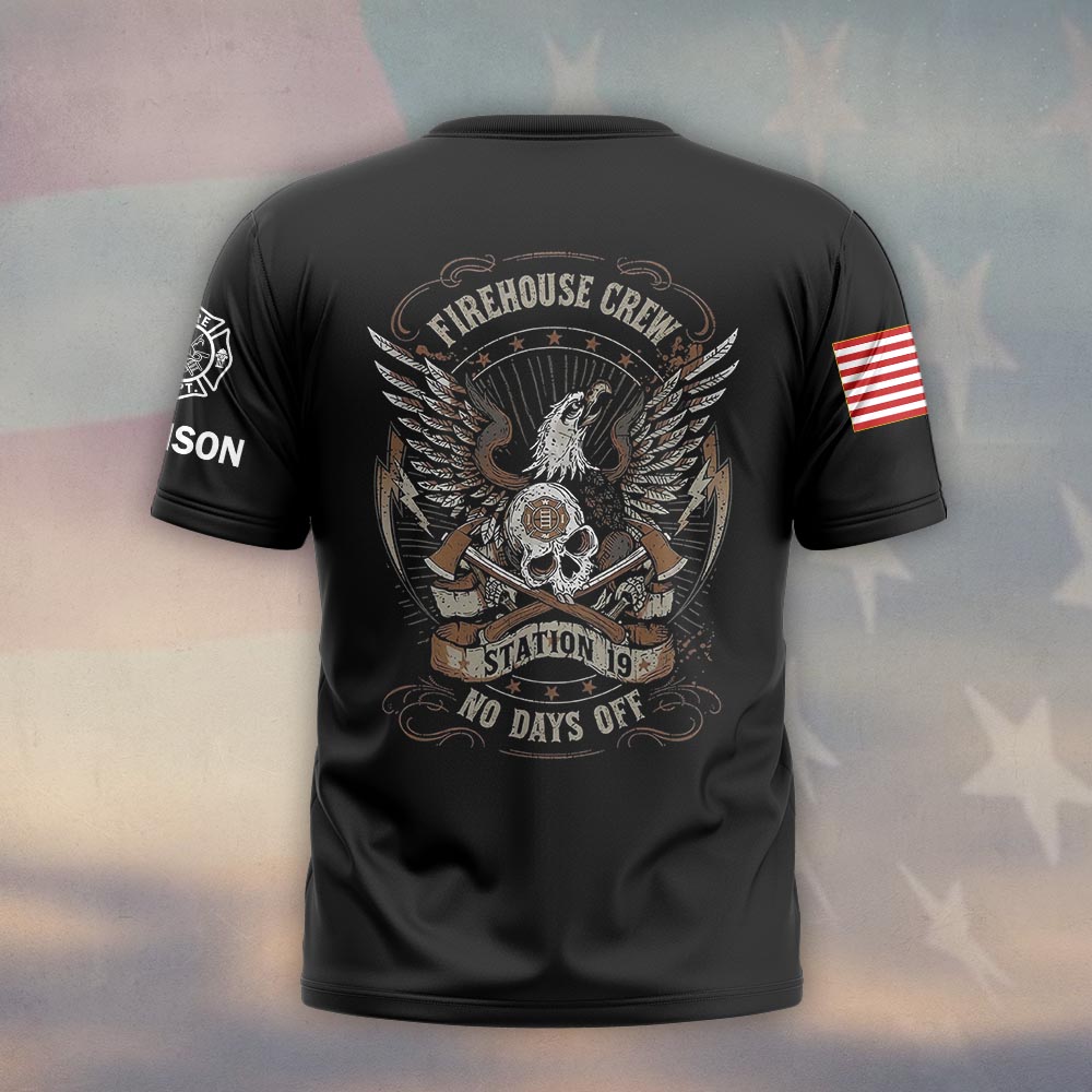 Custom Name & Text Firehouse Crew No Days Off #DQH0431 – T-shirt