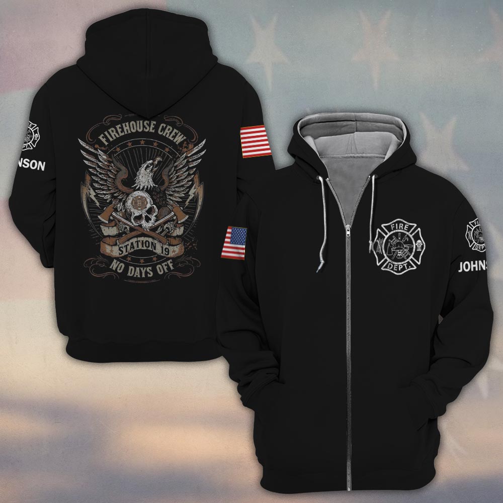 Custom Name & Text Firehouse Crew No Days Off #DQH0431 – Zip Hoodie