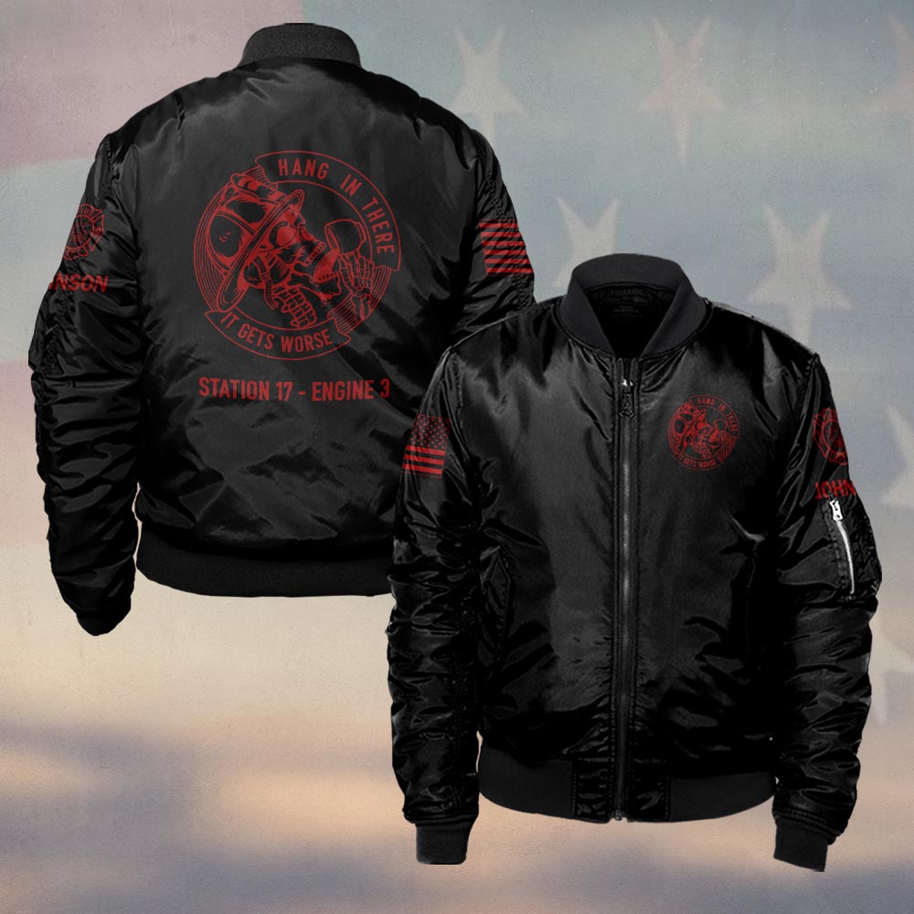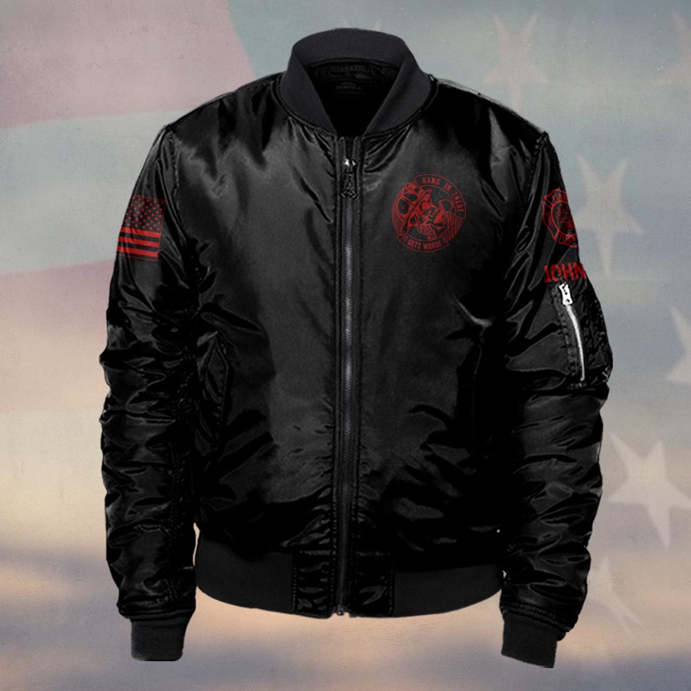 Custom Name & Text Hang In There It Get Worse Firefighter #DQH0425 – Bomber Jacket