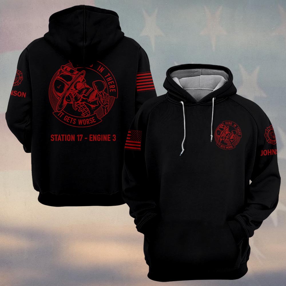 Custom Name & Text Hang In There It Get Worse Firefighter #DQH0425 – Hoodie
