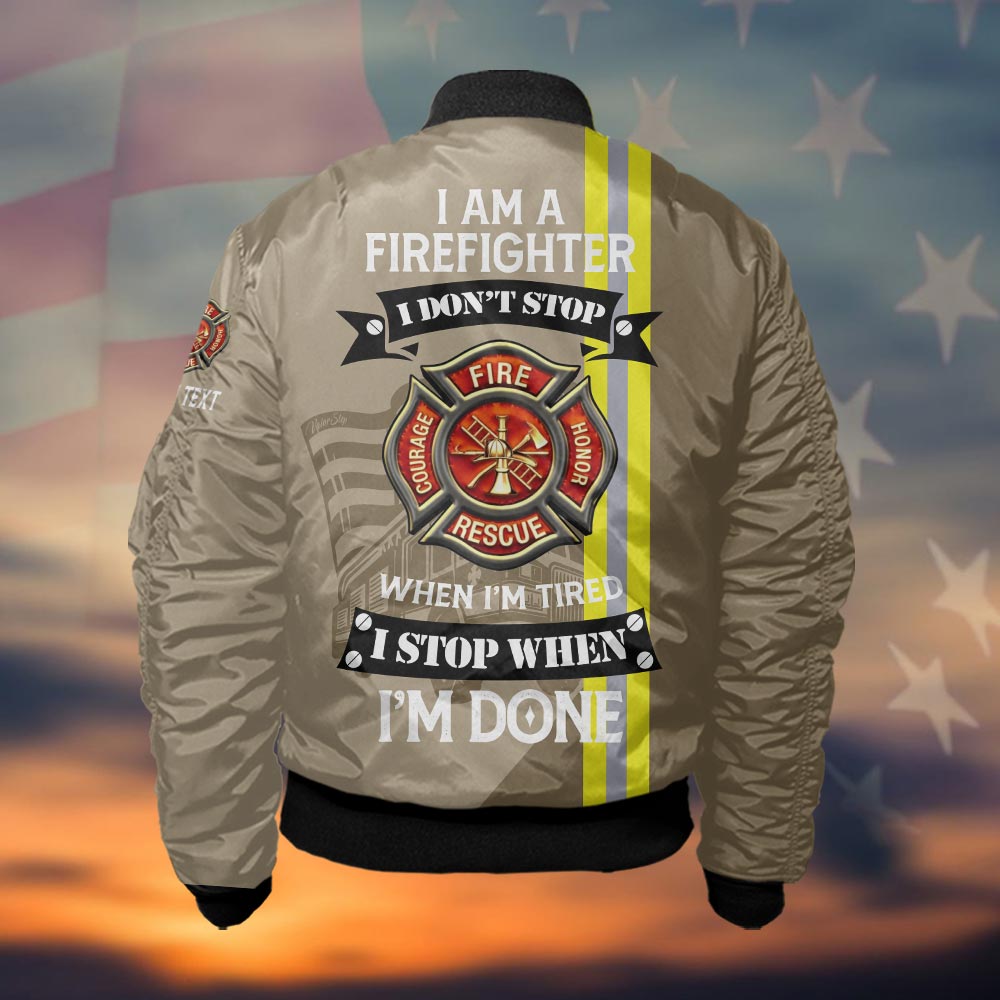 Custom Name & Text I Am A Firefighter I Don’t Stop #DQH0026 – Bomber Jacket