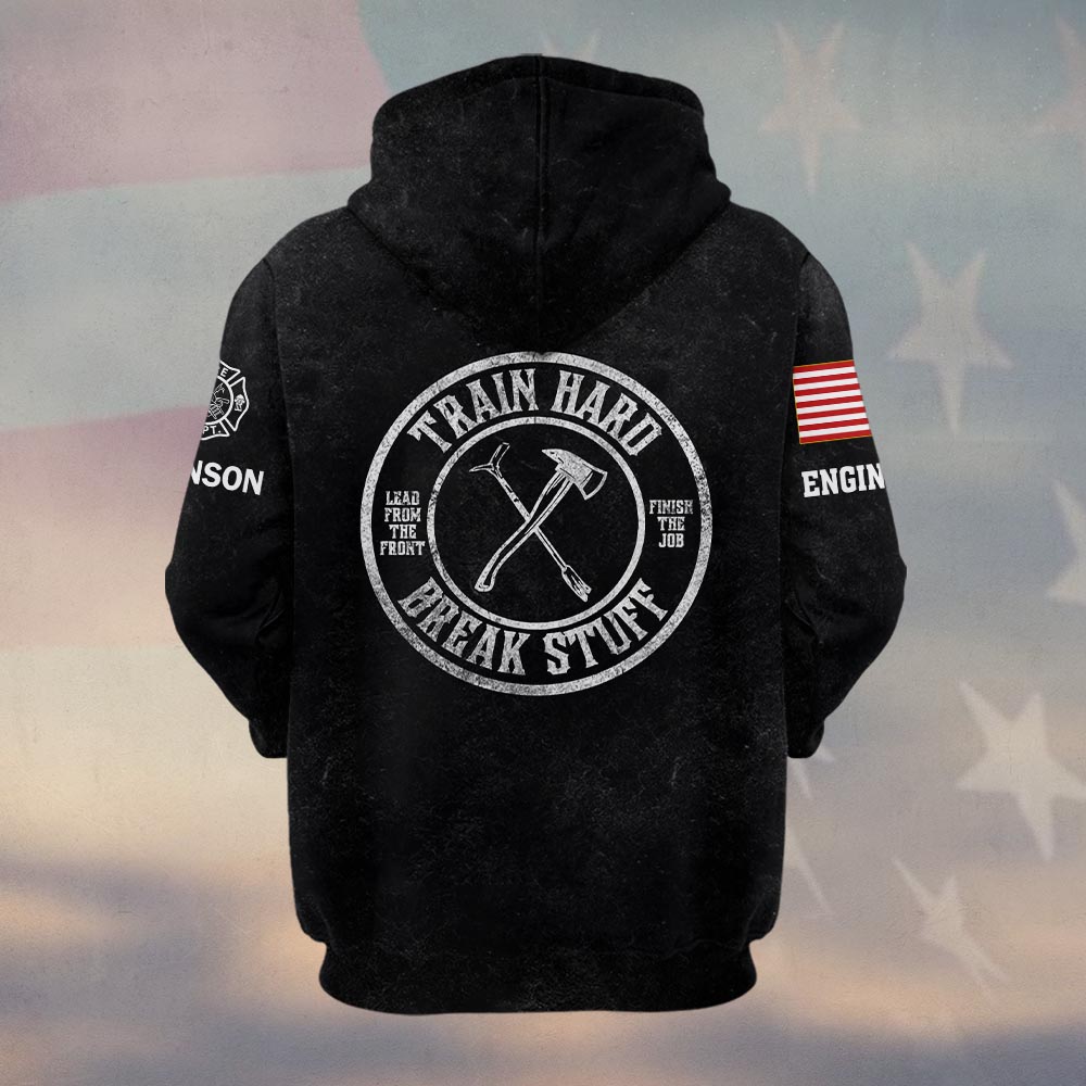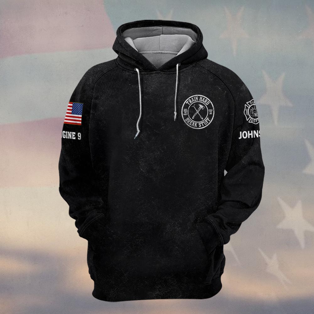 Custom Name & Text Train Hard And Break Stuff Firefighter #DQH0428 – Hoodie