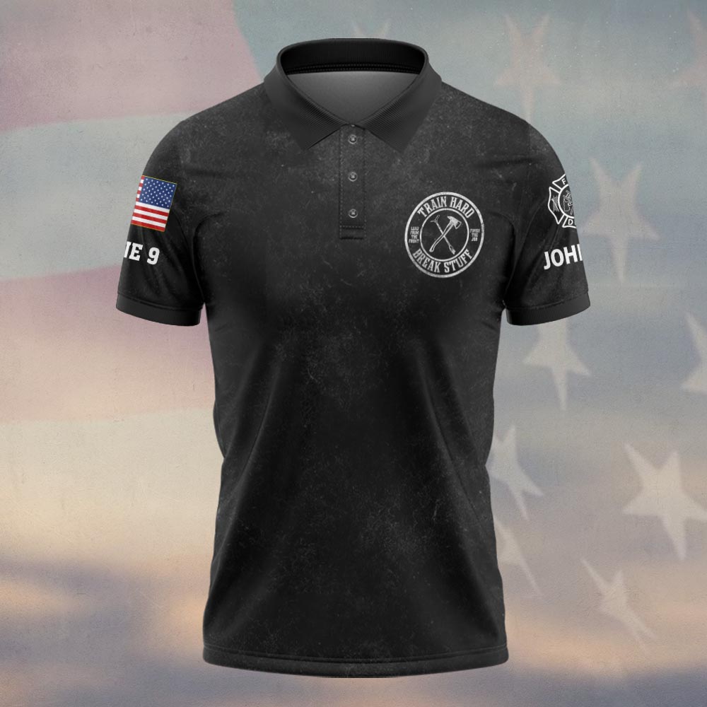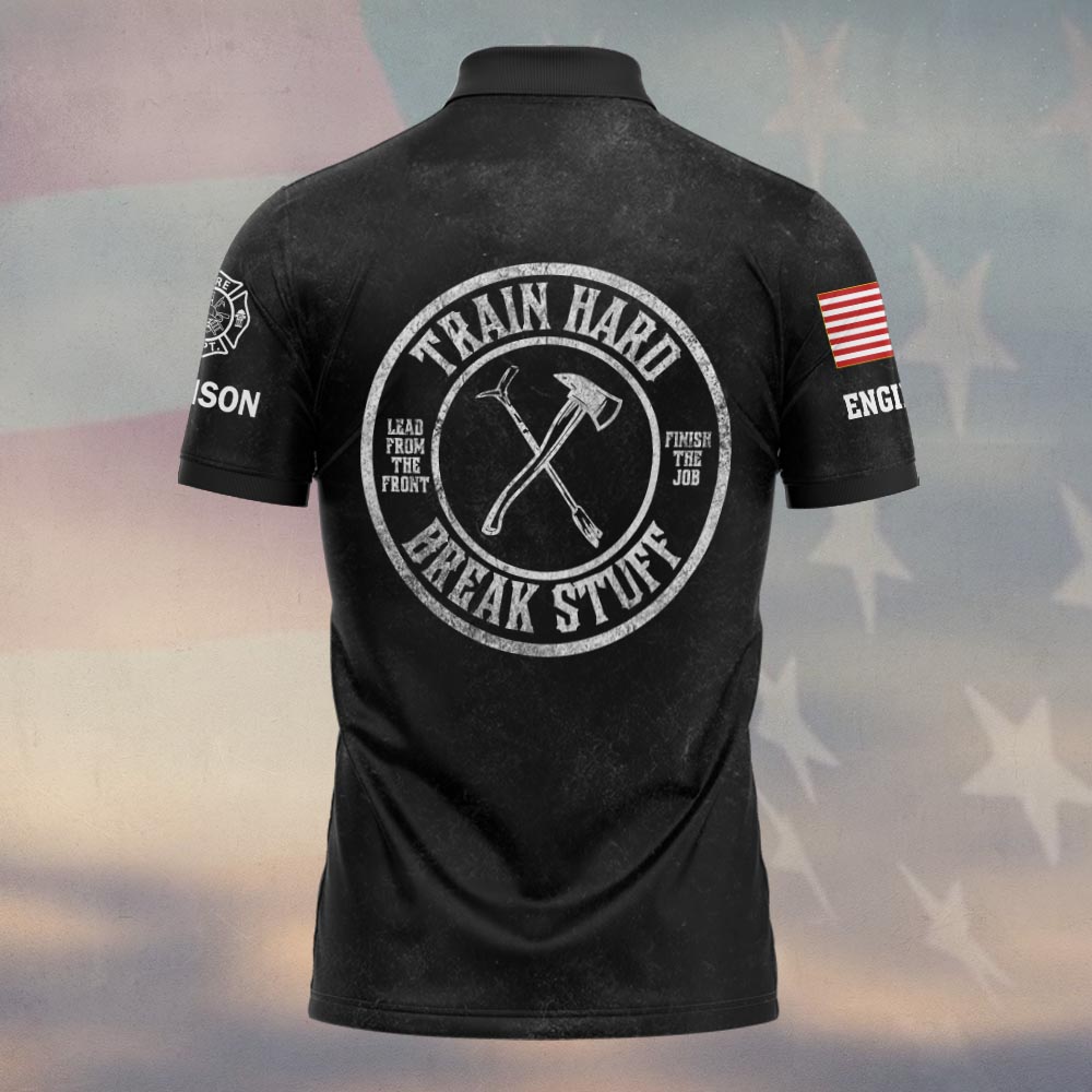 Custom Name & Text Train Hard And Break Stuff Firefighter #DQH0428 – Polo