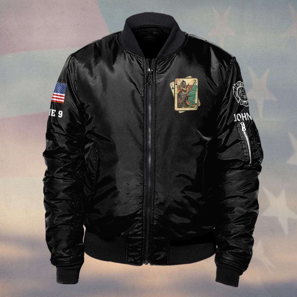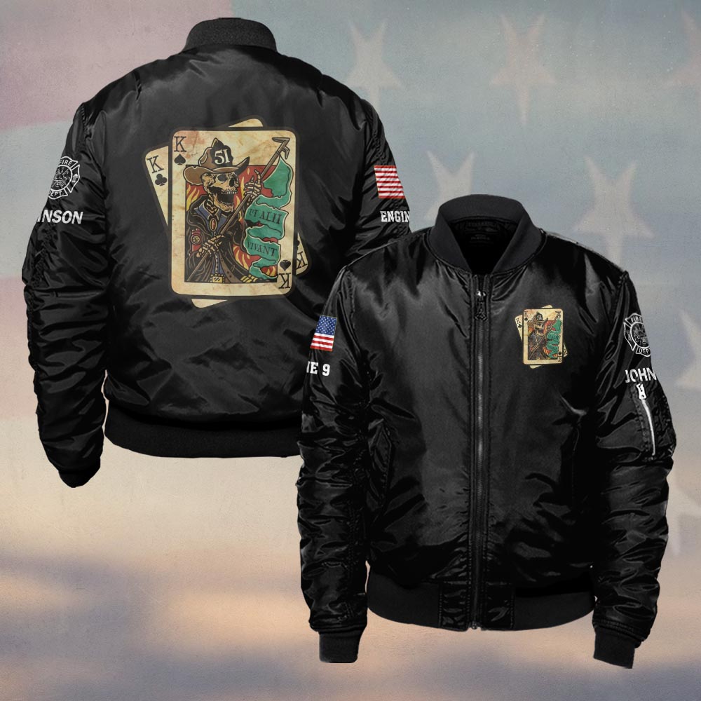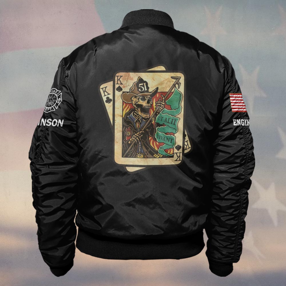 Custom Name & Text Ut Alii Vivant King Cards Firefighter #DQH0412 – Bomber Jacket