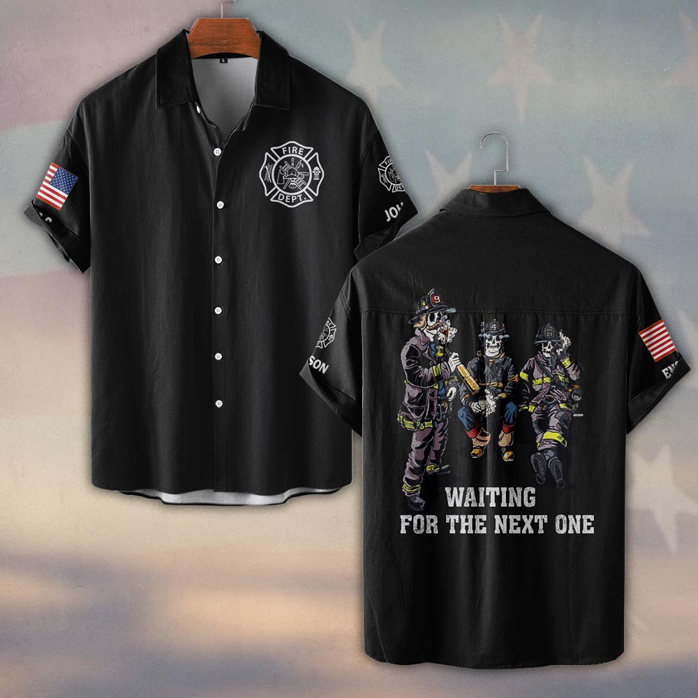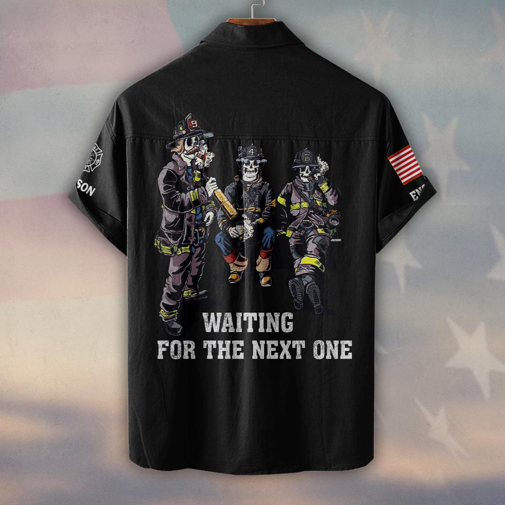 Custom Name & Text Waiting For The Next Call Firefighter #DQH0427 – Short Sleeve Button Shirt