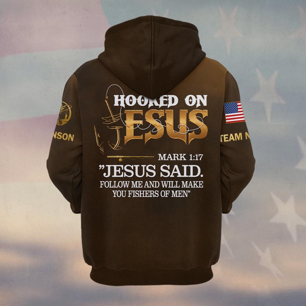 Custom Team & Text Hooked on Jesus – Christian Fishing #DQH0231 – Hoodie