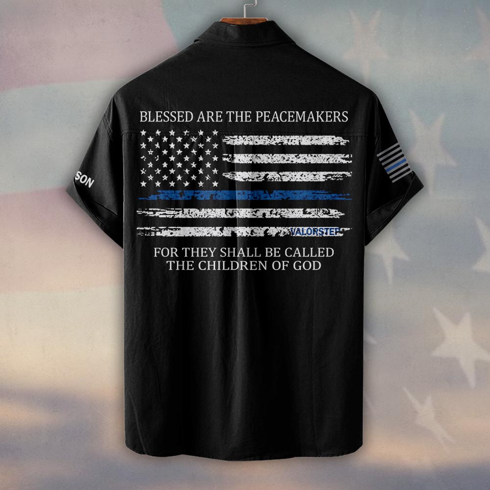 Custom Text Blue Line Spartan Police #DQH0223 – Short Sleeve Button Shirt