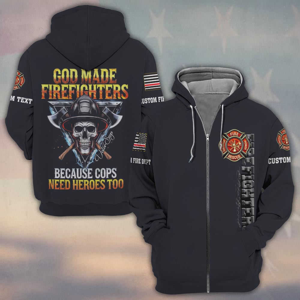 Custom Text & Dept God Made Firefighters Because Cop Needs Hero #DQH0158 – Zip Hoodie