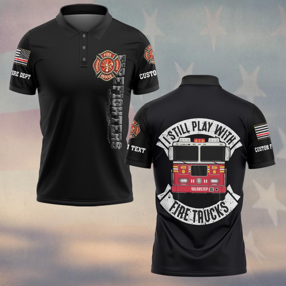 Custom Text & Dept I Still Play With Fire Trucks #DQH0172 – Polo