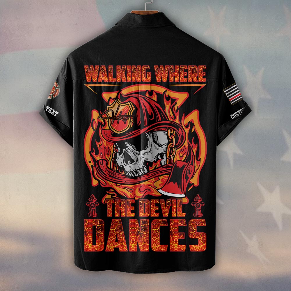 Custom Text & Dept Walking Where The Devil Dances #DQH0170 – Short Sleeve Button Shirt