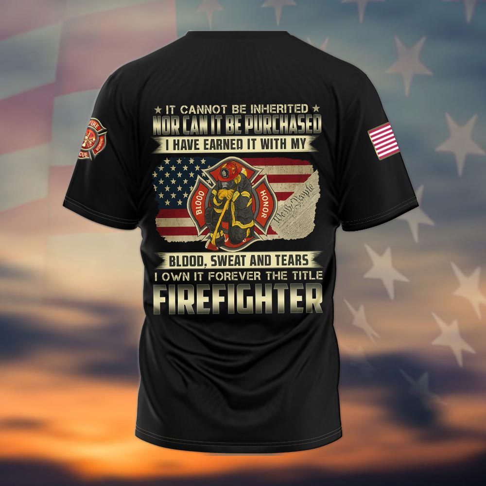 Custom Text Earned with Blood, Sweat, and Tears – Firefighter Pride #DQH0037 – T-shirt