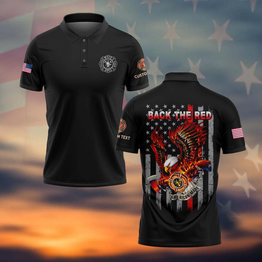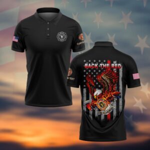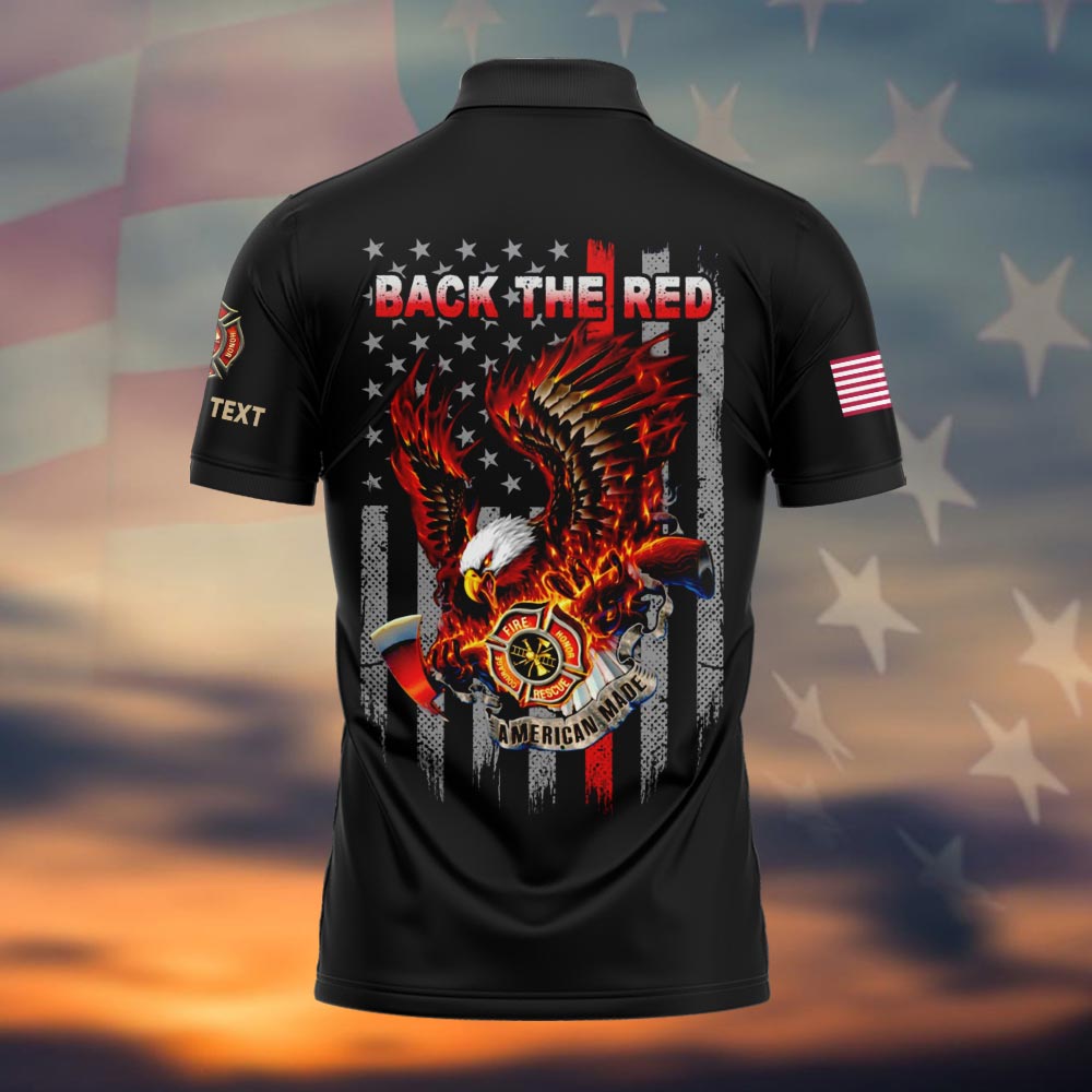 Custom Text & Fire Department Station Number Back The Red #DQH0036 – Polo