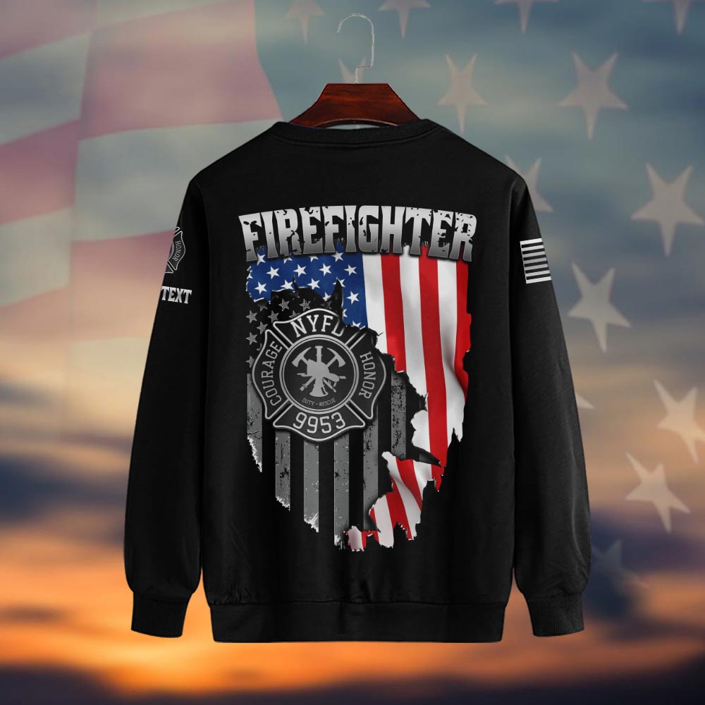 Custom Text & Fire Department Station Number Firefighter #DQH0021 – Sweatshirt