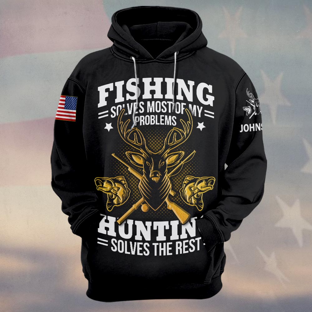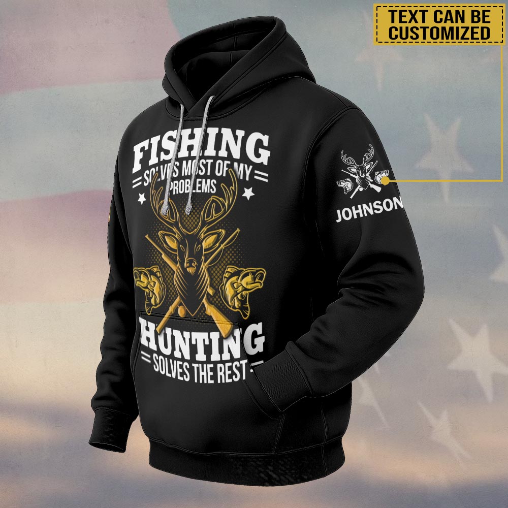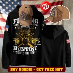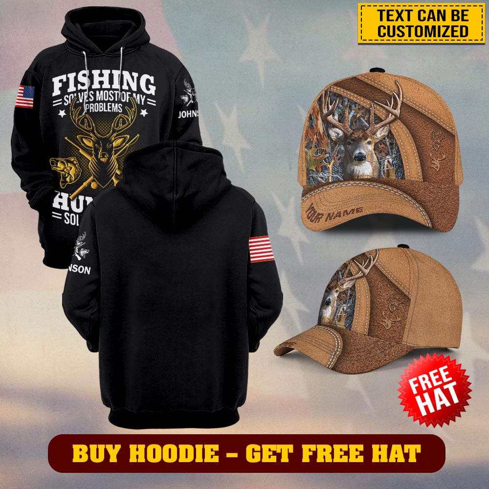 Custom Text Fishing & Hunting Solves It All #DQH0226 – Buy Hoodie Get Free Hat