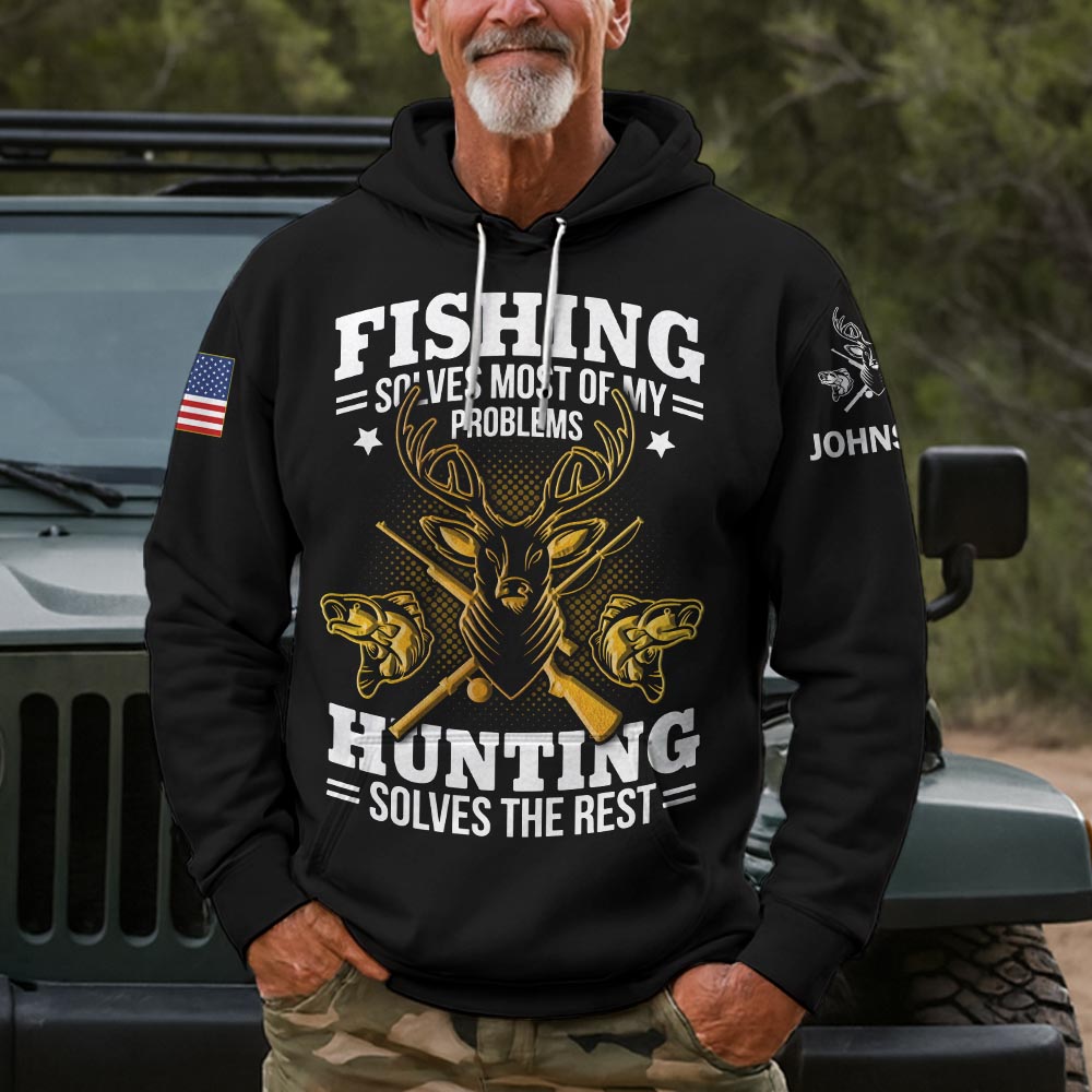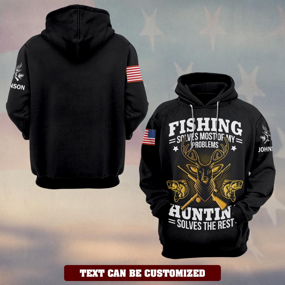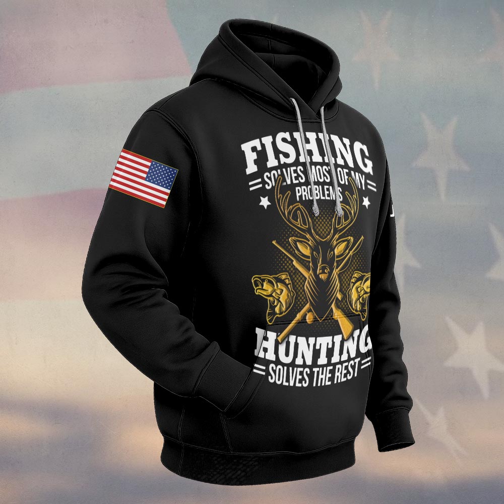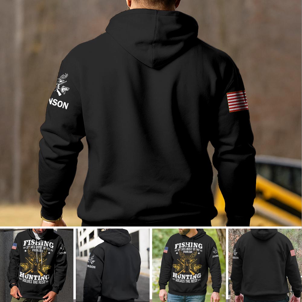 Custom Text Fishing & Hunting Solves It All #DQH0226 – Buy Hoodie Get Free Hat