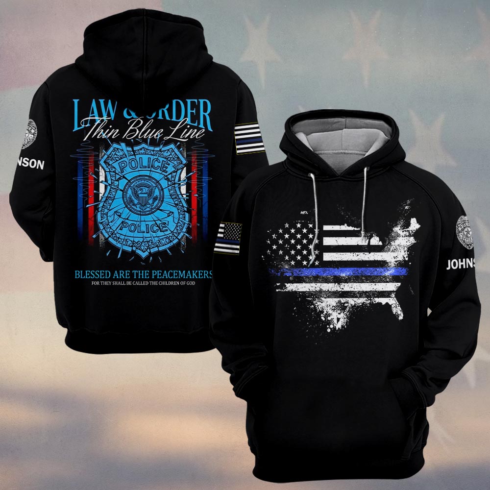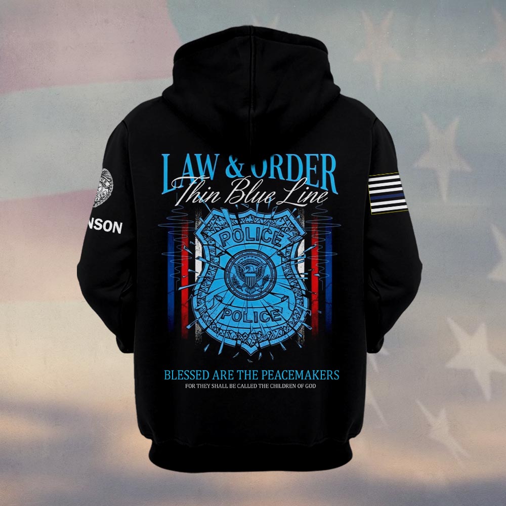 Custom Text Law and Order Thin Blue Line Police Edition #DQH0218 – Hoodie