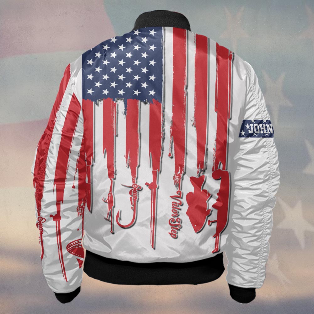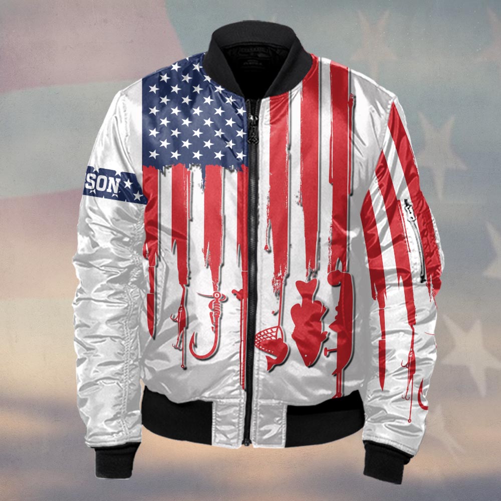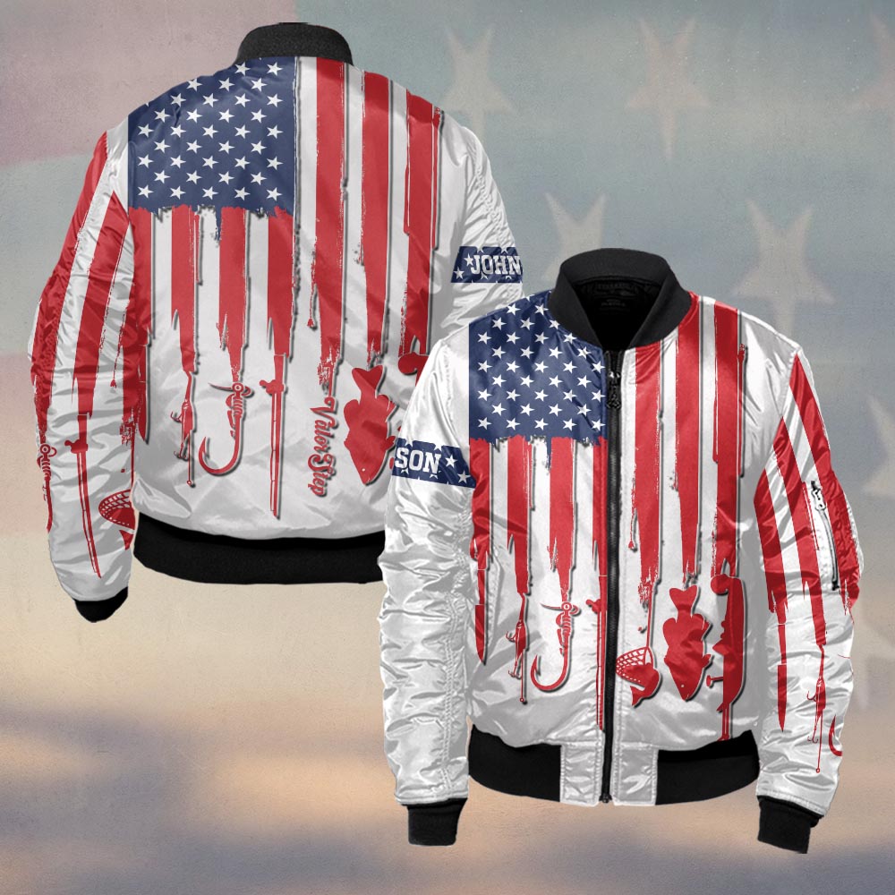 Custom Text Patriotic Angler 3D Fishing #DQH0230 – Bomber Jacket