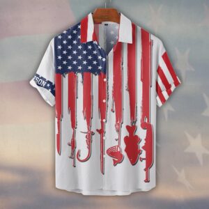 Be the first to review “Custom Text Patriotic Angler 3D Fishing #DQH0230 – Short Sleeve Button Shirt”