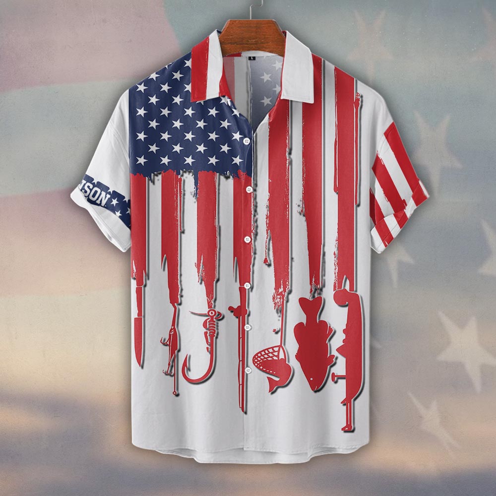 Custom Text Patriotic Angler 3D Fishing #DQH0230 – Short Sleeve Button Shirt
