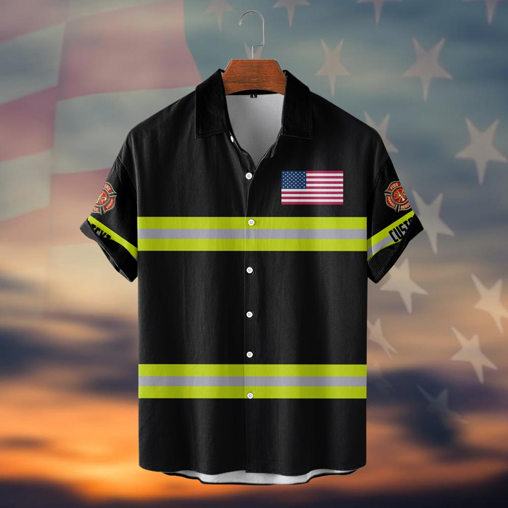 Custom Text Rescue Firefighter #DQH0031 – Short Sleeve Button Shirt