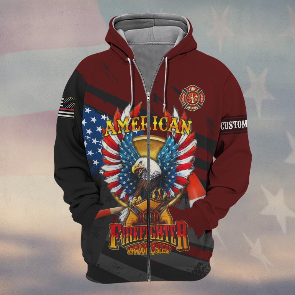Custom Text Wings of Courage Firefighter #DQH0157 – Zip Hoodie